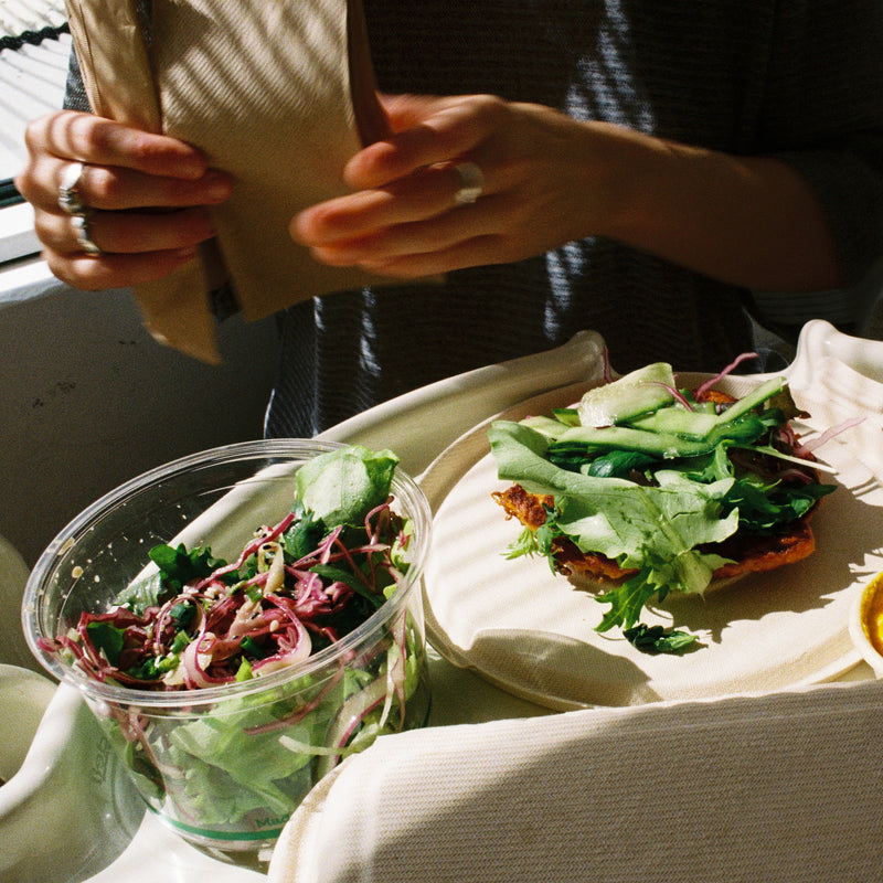 Our clear takeout containers are made from the Ingeo™ brand of polylactic acid (PLA), a bioplastic sourced from regenerative resources like beets, sugarcane and cassava. Not petrochemicals. Lids are sold separately.