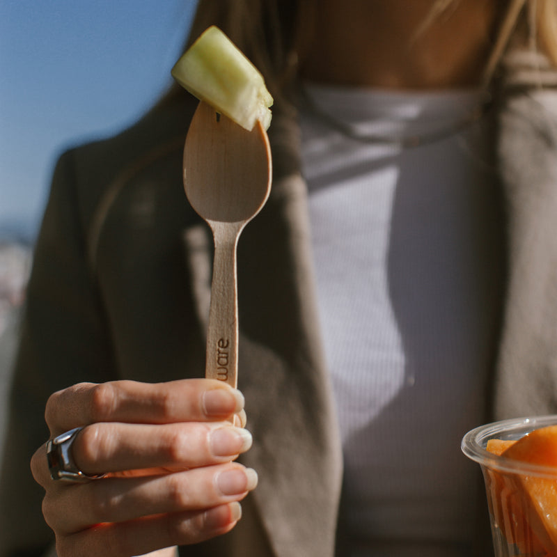Our wooden cutlery is made from birch wood, a fast-growing species native to Northeastern Europe. This durable material is fine-tuned, buffed, and smooth, perfect for gelato, Mie goreng, and everything in between. Our cutlery range includes forks, spoons, knives, teaspoons, stirrers, and sporks. We also offer cutlery sets complete with a napkin.