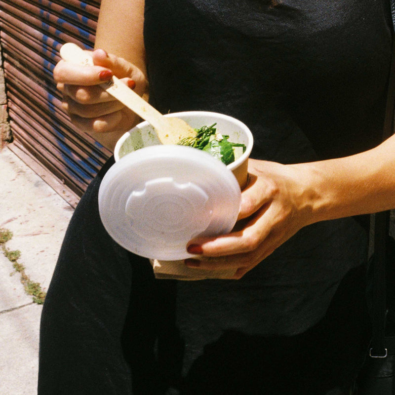 Our polylactic acid (PLA) lids offer a secure, leak-proof fit for our EcoBowl range. PLA is produced from plant feedstocks such as corn, cassava, sugar cane or beets and provides insulation, water and oil resistance. Certified industrially compostable to the ASTM D6400 and EN 13432 standards, bioplastic materials offer a circular alternative to petrochemical plastic lids.