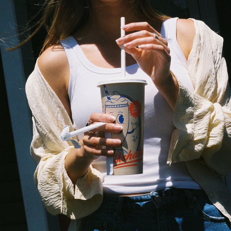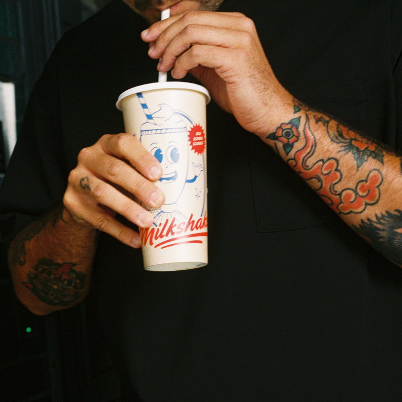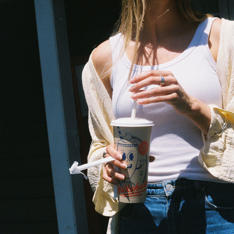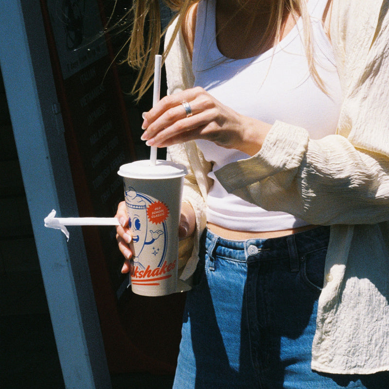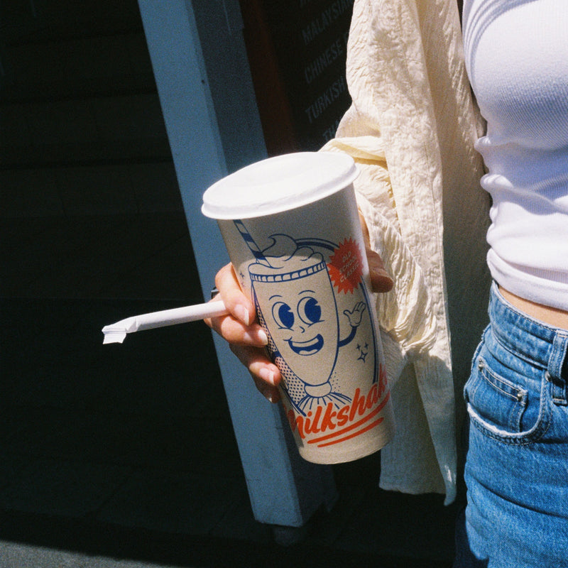 Channelling 1990s nostalgia, our paper milkshake cup is a nod to simple times, basic old-school burgers, chunky chips with tomato sauce (obviously), and milkshakes. Eaten seaside or the hood of your car. Or maybe it was fried battered fish, chips, tartare sauce or hot dogs, the battered kind on a stick. This cup is made from 100% renewable resources, FSC® certified paperboard with a plant-made Ingeo™ bioplastic lining, suitable for milkshakes, thick shakes and, if you are bringing them back – slushies.