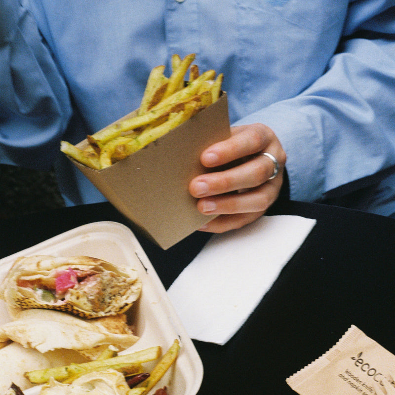 Serve hot chips, not soggy chips, with our kraft chip cups. A heavy-duty paperboard featuring tight-knit fibres provides increased insulation properties and water—and oil resistance. That means your mayo and tomato sauce won’t make a soggy mess. A favourite amongst food truck vendors, chip cups are also excellent takeaway packaging for spring rolls, churros, doughnuts or any finger foods that might need containing.